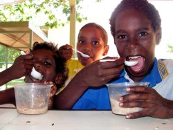 Afternoon tea is assorted fruits and Milo or water. Favourites with the students include watermelon, corned beef and vegies, Friday sausage sizzles and of course Attendance reward fruit juice based icy cups! |